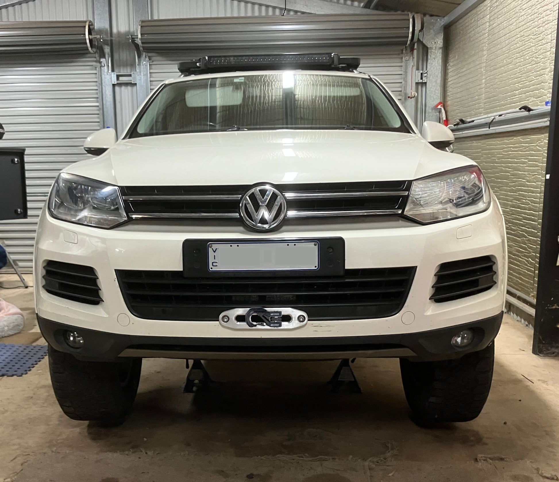 Original crash bar centre is removed, but the OE recovery points are still usable.